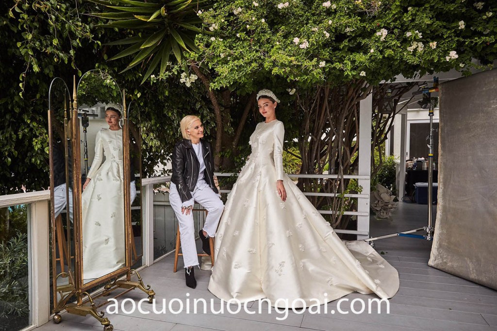 Và chắc chắn, mọi cô dâu yêu thời trang đều không thể nào quên được vẻ đẹp kinh diễm của người mẫu Miranda Kerr trong bộ trang phục cưới đẹp lộng lẫy đến từ thương hiệu lừng danh Christian Dior. Siêu phẩm váy cưới Haute Couture đẹp như cổ tích được thiết kế, may đo dành riêng duy nhất cho cựu thiên thần Victoria’s Secret hoàn hảo đến từng đường kim mũi chỉ, chất liệu vượt thời gian đi cùng chi tiết trang trí hoàn toàn thủ công. Đây cũng chính là mẫu váy cưới truyền rất nhiều cảm hứng cho các tân nương trên toàn thế giới.