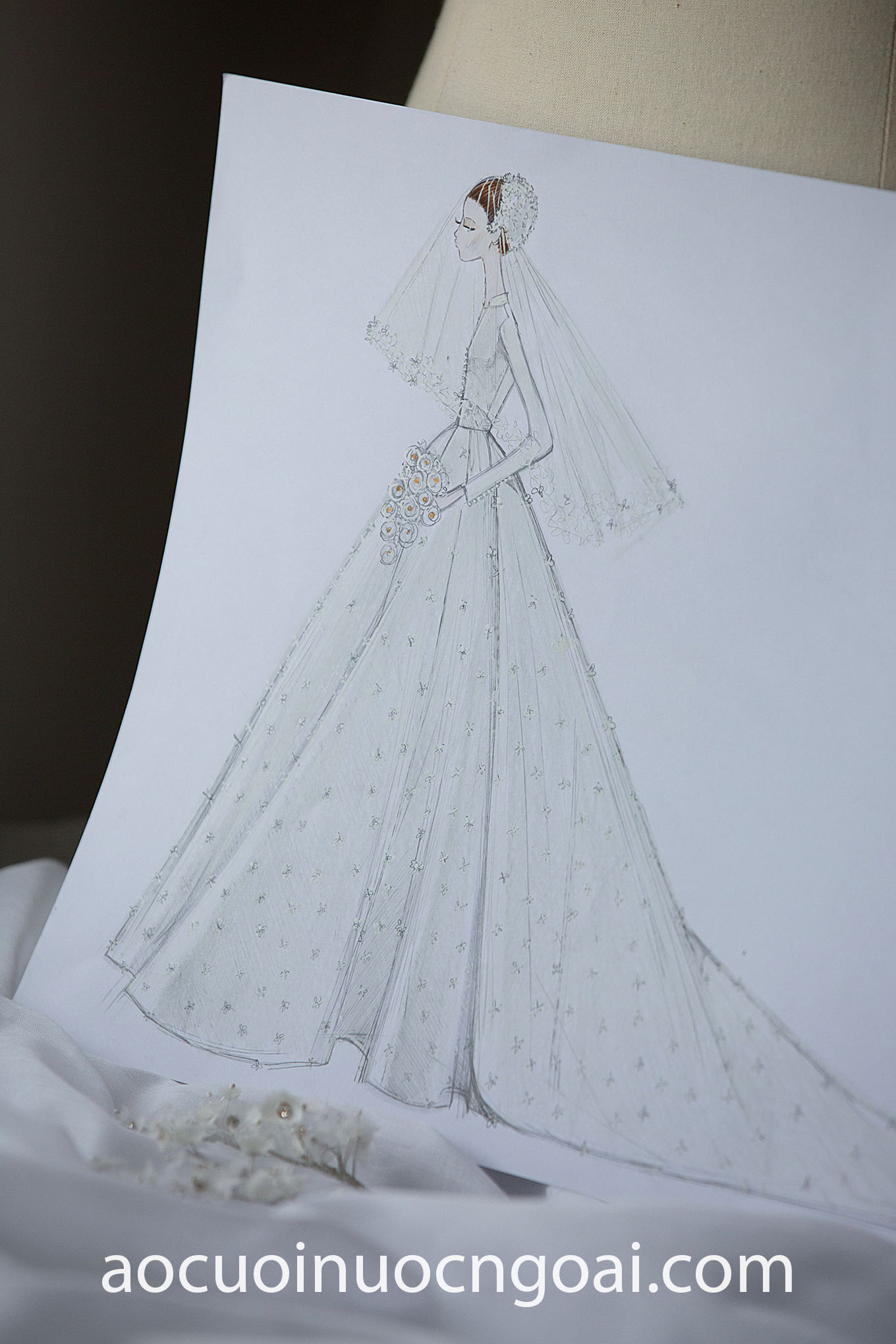 – Phác thảo mẫu thiết kế dựa trên ý tưởng, yêu cầu của cô dâu