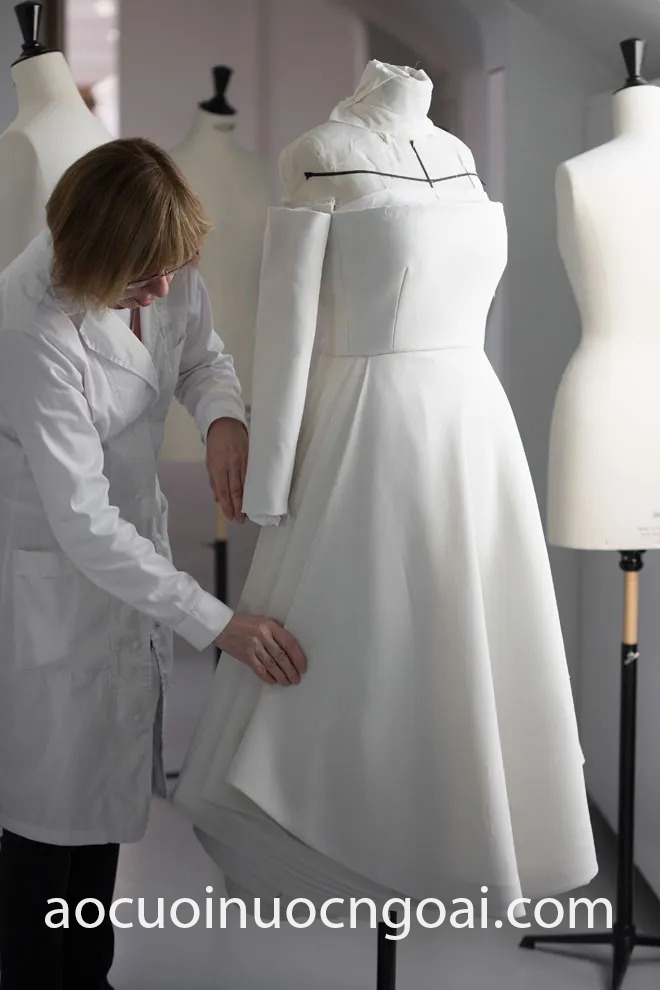 QUY TRÌNH MAY ĐO THIẾT KẾ VÁY CƯỚI NGẮN CAO CẤP