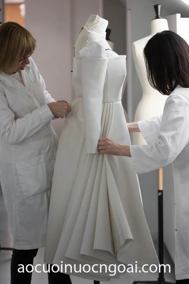 Tiến hành dựng form dáng theo số đo và tỉ lệ cơ thể của cô dâu.