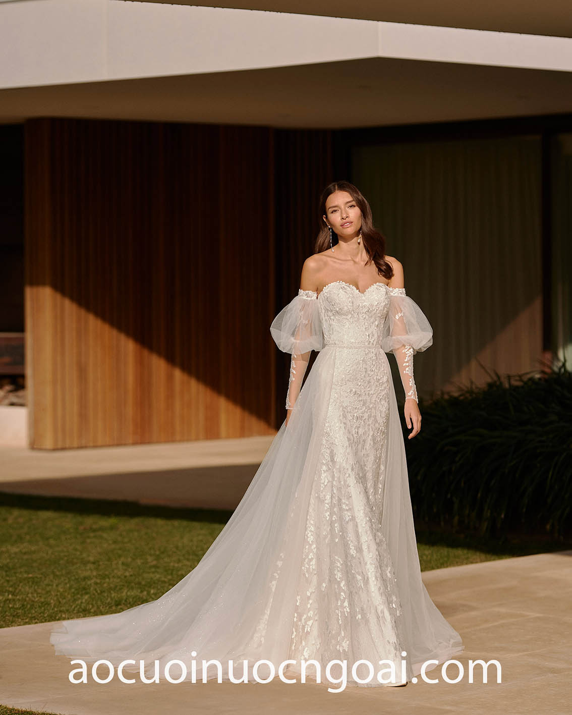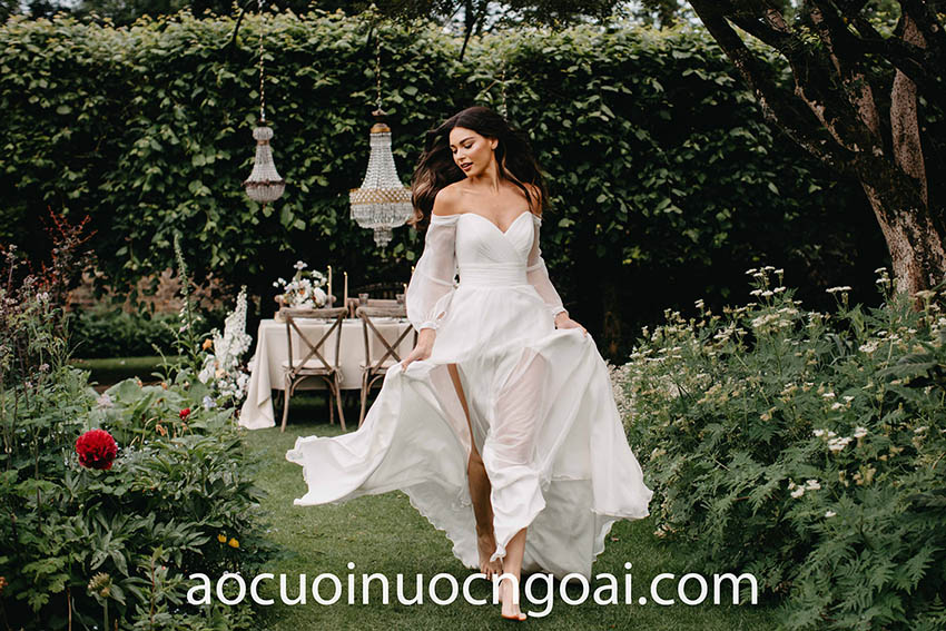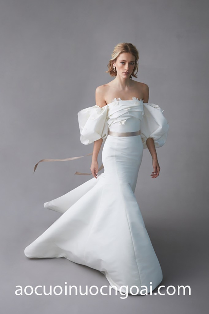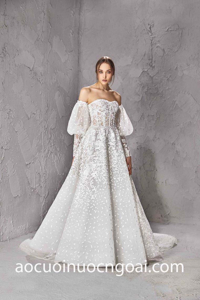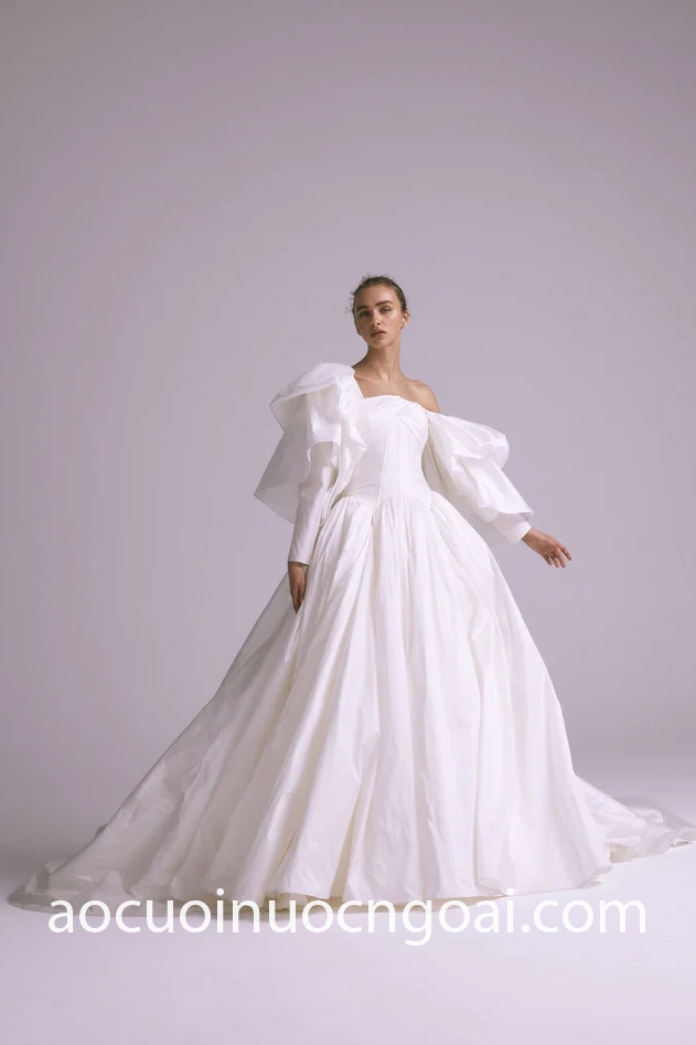 Hot nhất trong những năm nay và chưa có dấu hiệu hạ nhiệt phải kể đến kiểu áo cưới trễ vai tay phồng, một sự kết hợp ăn ý cổ áo trễ giúp khai thác khung xương quai xanh cùng bờ vai thon, đi cùng tay áo cưới phồng cải tiến liên tục để cho ra mắt những thiết kế mãn nhãn và đặc sắc nhất.