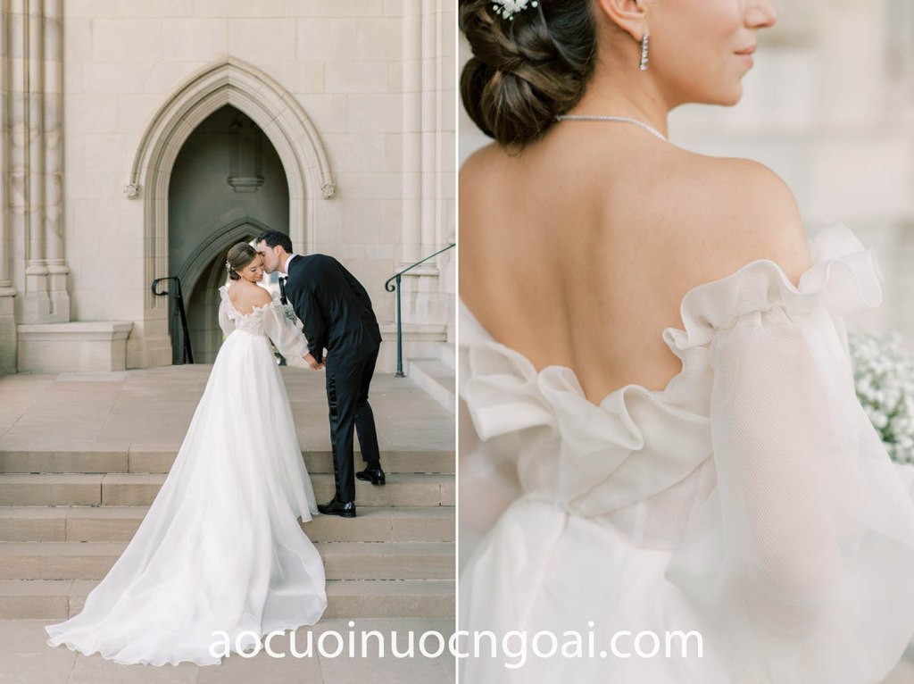 Hãy cùng nhìn ngắm những hình ảnh tuyệt đẹp của các cô dâu thực tế, diện lên người những thiết kế áo cưới tay phồng trendy, qua đó cập nhật thêm các xu hướng váy cưới tay phồng đẹp nhất hiện nay nhé.