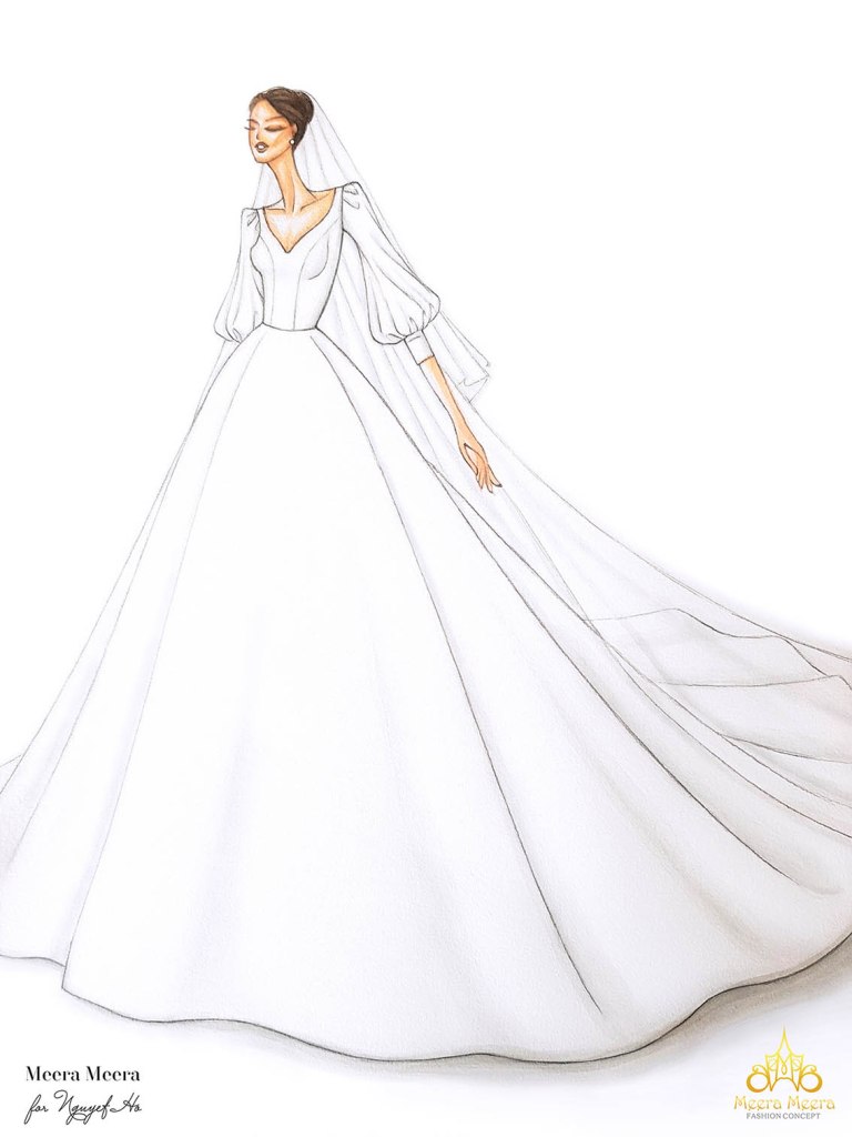 Đầu tiên, bản vẽ phác thảo sẽ được thực hiện dựa trên mong muốn và yêu cầu của cô dâu. Đây là một bước quan trọng giúp bạn có thêm hình dung rõ nét về chiếc áo cưới mà bạn luôn ao ước.