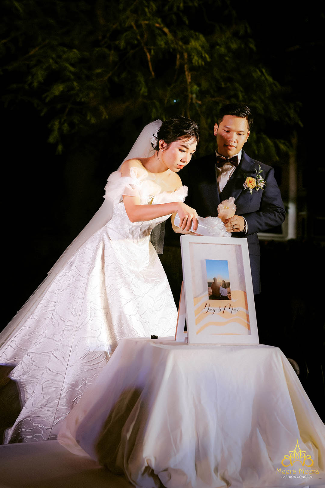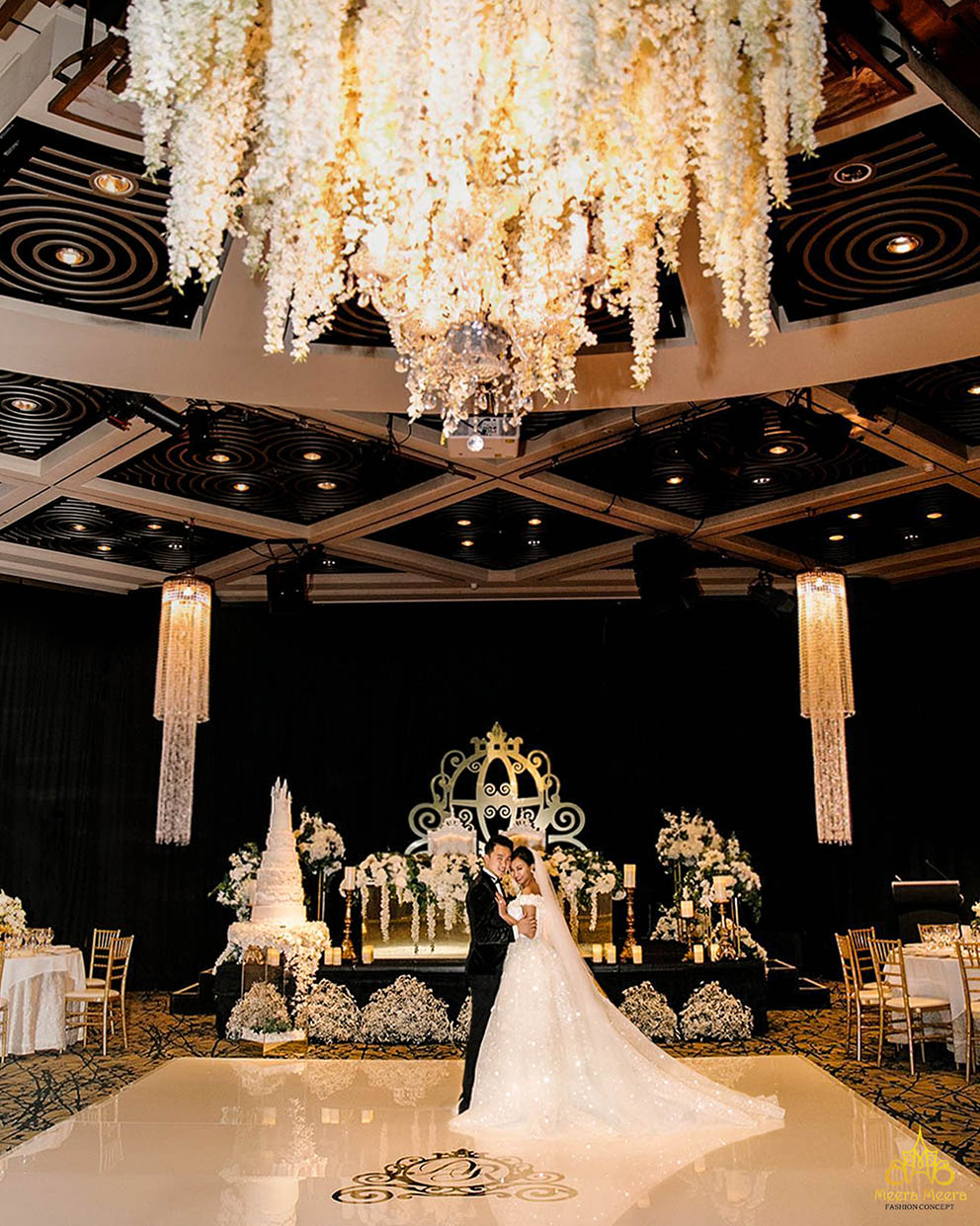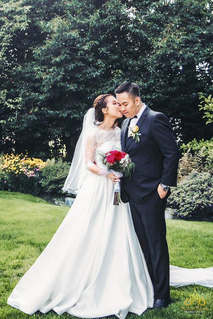 Trong không gian dạ tiệc cưới sang trọng của một nhà hàng tại Úc, cô dâu Cherry Tong hoá thân thành nàng công chúa kiều diễm khi diện lên người chiếc áo cưới công chúa thiết kế riêng vô cùng lộng lẫy đến từ thương hiệu danh tiếng Meera Meera Fashion Concept. Cô dâu chiếm trọn spotlight khi khoe khéo sắc vóc gợi cảm với thân áo trễ vai tạo hình cánh hoa hé nở, toàn bộ váy cưới sử dụng chất liệu kim sa ánh xà cừ đặc biệt, bắt sáng lấp lánh hoàn hảo trong không gian tiệc cưới xa hoa, xây dựng nên hình ảnh đắt giá nhất mà cô dâu luôn mong ước được diện lên người, trong ngày trọng đại nhất cuộc đời mình.