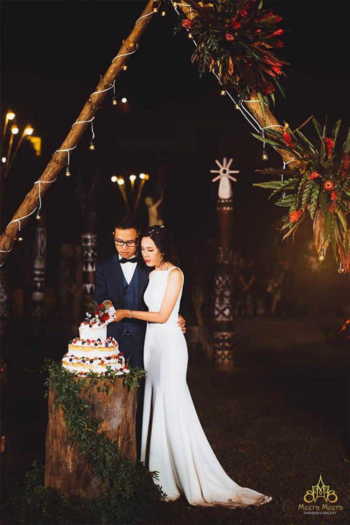 Trong hôn lễ đặc biệt này, cô dâu tự tin diện lên người chiếc váy cưới đuôi cá tối giản với chất liệu thượng hạng đặt may riêng tại nhà Meera Meera. Những đường cắt may tinh tế tạo nên dáng váy ôm theo đường cong quyến rũ của cô dâu, hoàn thiện vẻ đẹp vượt thời gian và là mảnh ghép hoàn hảo mà cô dâu mong muốn phải có trong đám cưới của mình.