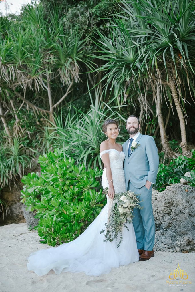 Vẻ đẹp của cô dâu là sự phối hợp hài hoà trong thiết kế tôn trọn vóc dáng ngọc ngà và sức quyến rũ đầy mê hoặc, vô cùng phù hợp với bầu không khí biển đảo và concept đám cưới lấy cảm hứng từ phong cách nhiệt đới tràn đầy sức sống. Cặp đôi đã có những giây phút thật sự thoải mái và tận hưởng bên gia đình cùng những người bạn thân thiết nhất vào dịp cuối tuần, trong một không gian mở sang trọng và đầy đủ tiện ích đẳng cấp của một resort đạt chuẩn Quốc tế.