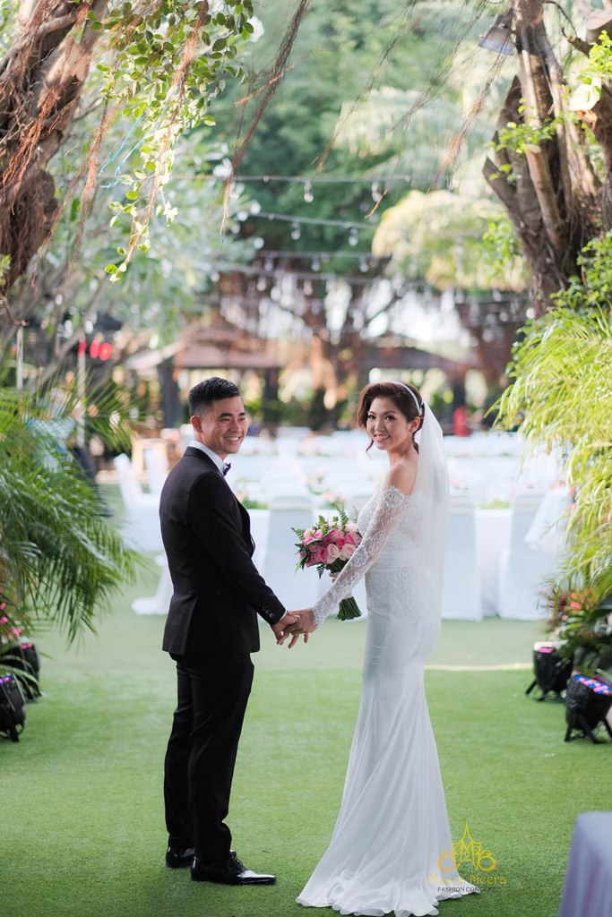 Trong tiếng sóng biển rì rào và không gian xanh tươi đẹp của khu nghỉ dưỡng cao cấp Shangri-La Boracay thuộc Philippines, cô dâu Charm Flores xuất hiện lộng lẫy như một Nữ thần đại dương trong chiếc váy cưới đuôi cá custom-made của thương hiệu cao cấp Meera Meera Fashion Concept.