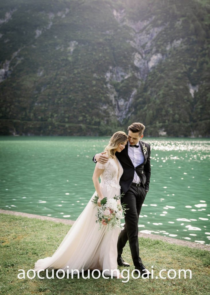Bên cạnh vẻ đẹp của đồi núi, những vùng hồ lấp lánh mang màu xanh ngọc bích với phong cảnh hữu tình, không gian thoáng đãng cũng là điểm đến lý tưởng cho bộ ảnh cưới trong mơ của các cặp đôi.