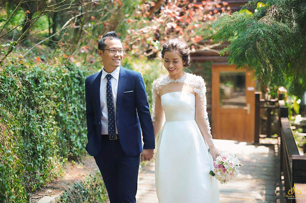Để chuẩn bị cho ngày chụp ảnh cưới kết hợp khám phá di sản văn hoá Hội An, cô dâu Thy Ho đã nhờ đến sự trợ giúp của Meera Meera để thực hiện chiếc áo cưới màu da custom dành riêng cho mình. Mẫu váy cưới chữ A nhẹ nhàng gây ấn tượng với lớp nền màu nude tôn lên vẻ rạng rỡ của cô dâu, cùng với đó, thân áo sát nách thoải mái và đường xẻ ngực sâu diềm ren vô cùng tinh tế giúp cô dâu khoe vẻ nữ tính, quyến rũ và hoàn toàn phù hợp với bối cảnh nên thơ tại địa danh du lịch nổi tiếng.