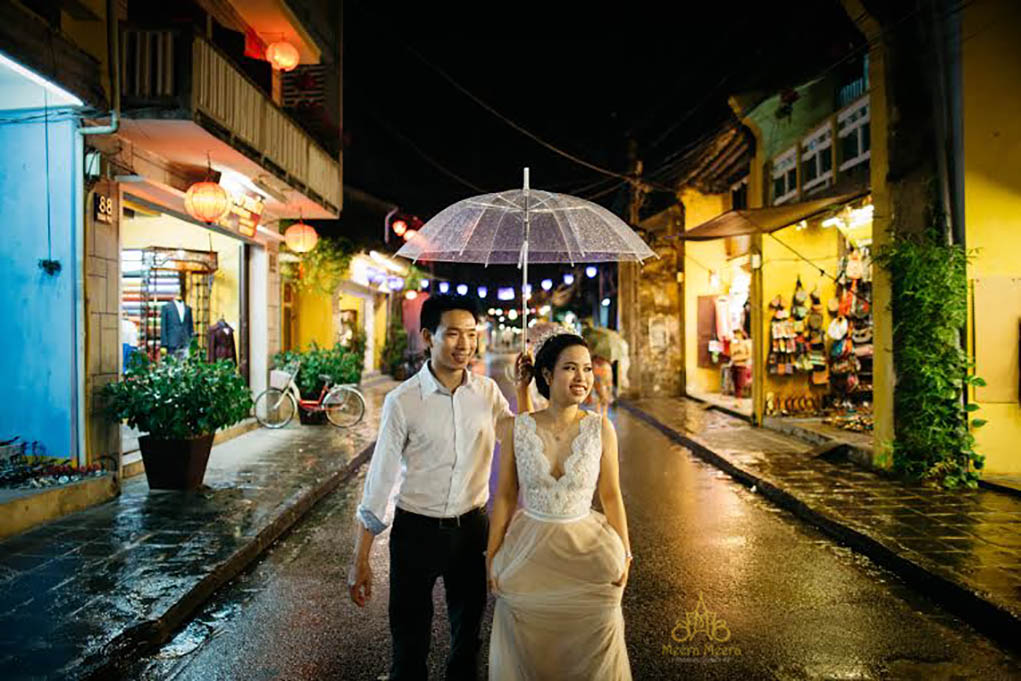 Một trong những điểm đến nhận được rất nhiều sự yêu thích từ phía các cặp đôi là phố cổ Hội An. Không gian cổ kính của một Hoài Phố trầm mặc, nổi bật với những căn nhà sơn vàng ốp ngói và đèn lồng treo cao, đi cùng với những danh lam thắng cảnh liền kề hứa hẹn mang đến cho bạn một bộ ảnh cưới du lịch đậm nét văn hoá Việt Nam.