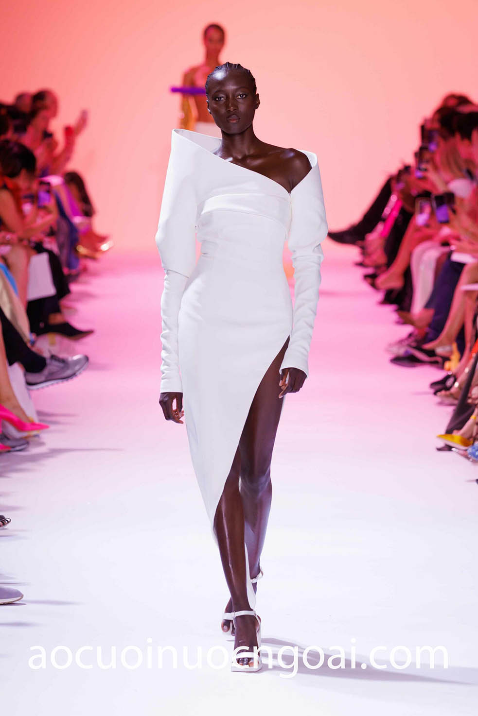 Show diễn Georges Hobeika Couture Fall 2023 tiếp tục khiến giới mộ điệu trầm trồ với tác phẩm đầy hấp dẫn. Mẫu váy cưới lệch vai minimalist thu hút sự chú ý với những đường cắt tinh xảo, kỹ thuật dựng phom sắc nét đi cùng đường xẻ tà cao táo bạo mang đến ánh nhìn đầy mê hoặc cho cô dâu sành điệu.