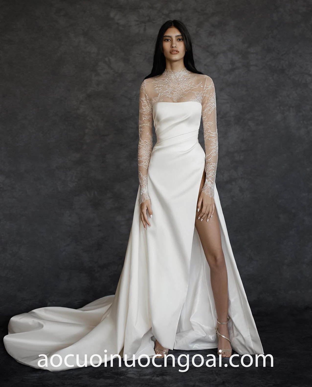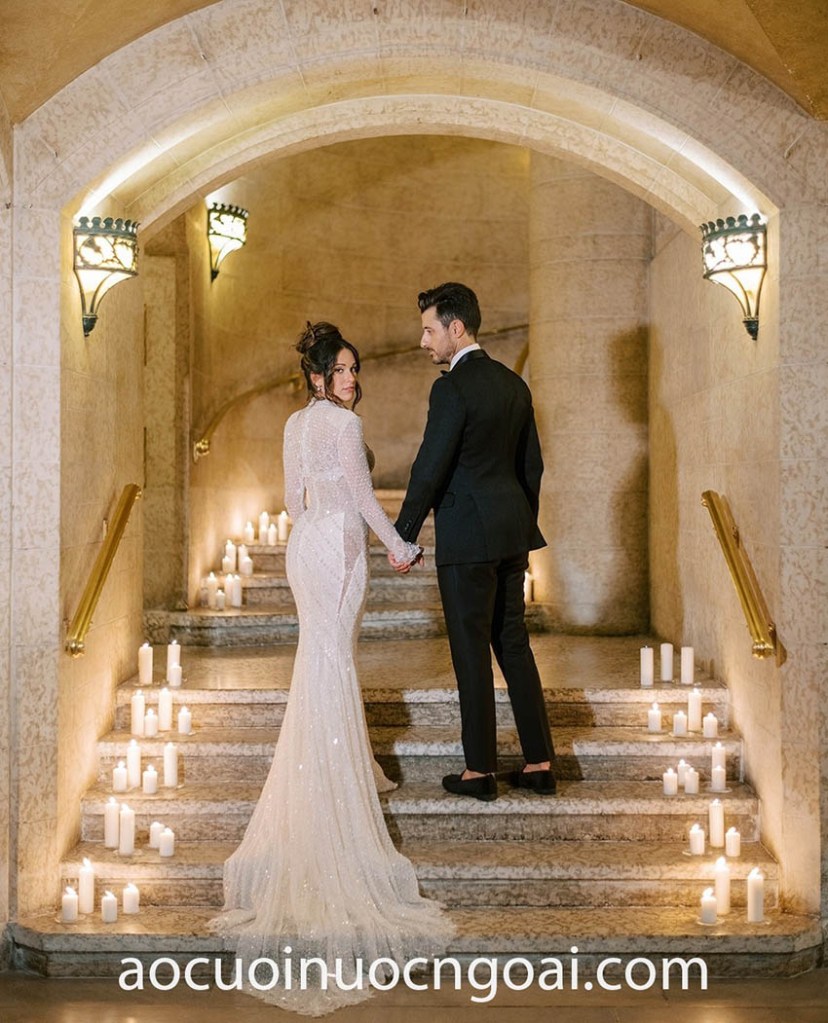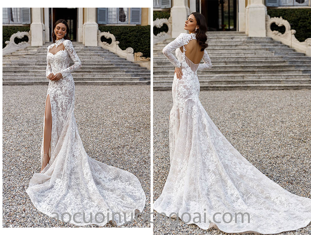ÁO CƯỚI CỔ CAO XẺ TÀ KHOE CHÂN NUỘT NÀ