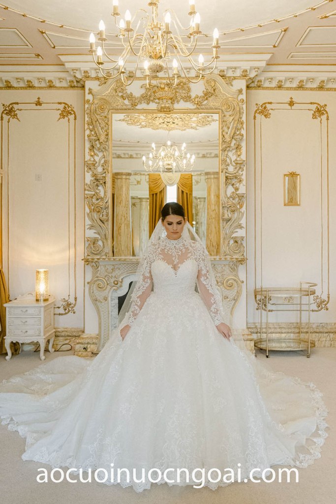Đối với những cô dâu đang tìm kiếm nét thanh lịch khiêm nhường, váy cưới cổ cao mang đến vẻ ngoài uy nghiêm và tinh tế. Cổ áo cao tạo thêm nét ấn tượng và vẻ vương giả, khiến bất kỳ cô dâu nào cũng cảm thấy mình như một nữ hoàng thực sự trong ngày đặc biệt của mình. Tuyệt vời hơn cả, vẻ đẹp của phong cách này là nó có thể được kết hợp với bất kỳ kiểu dáng nào, khiến váy cưới cổ cao trở nên cực kỳ linh hoạt cho hầu hết mọi cô dâu.