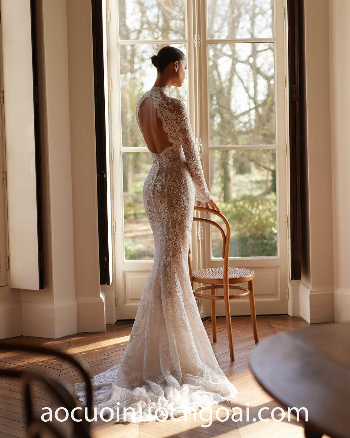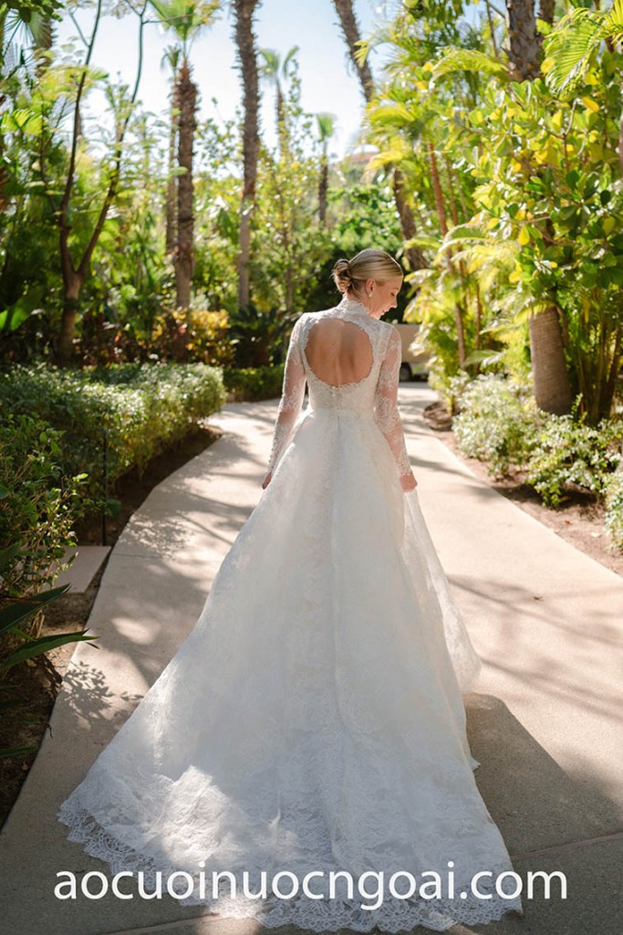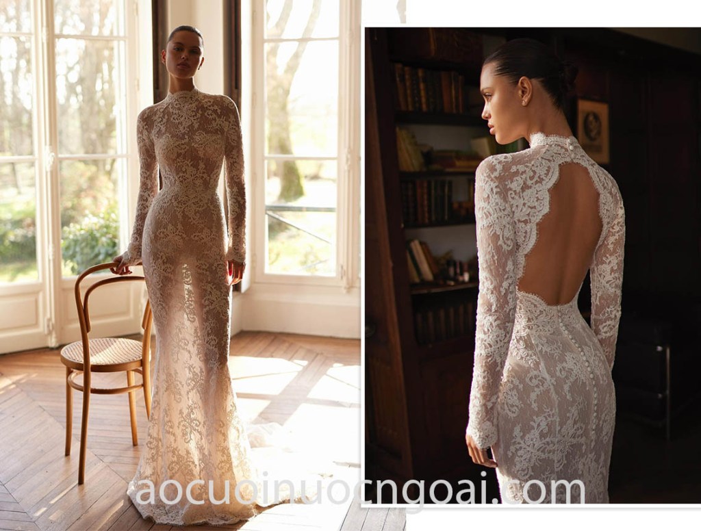 ÁO CƯỚI CỔ CAO KHOÉT LƯNG KEYHOLE