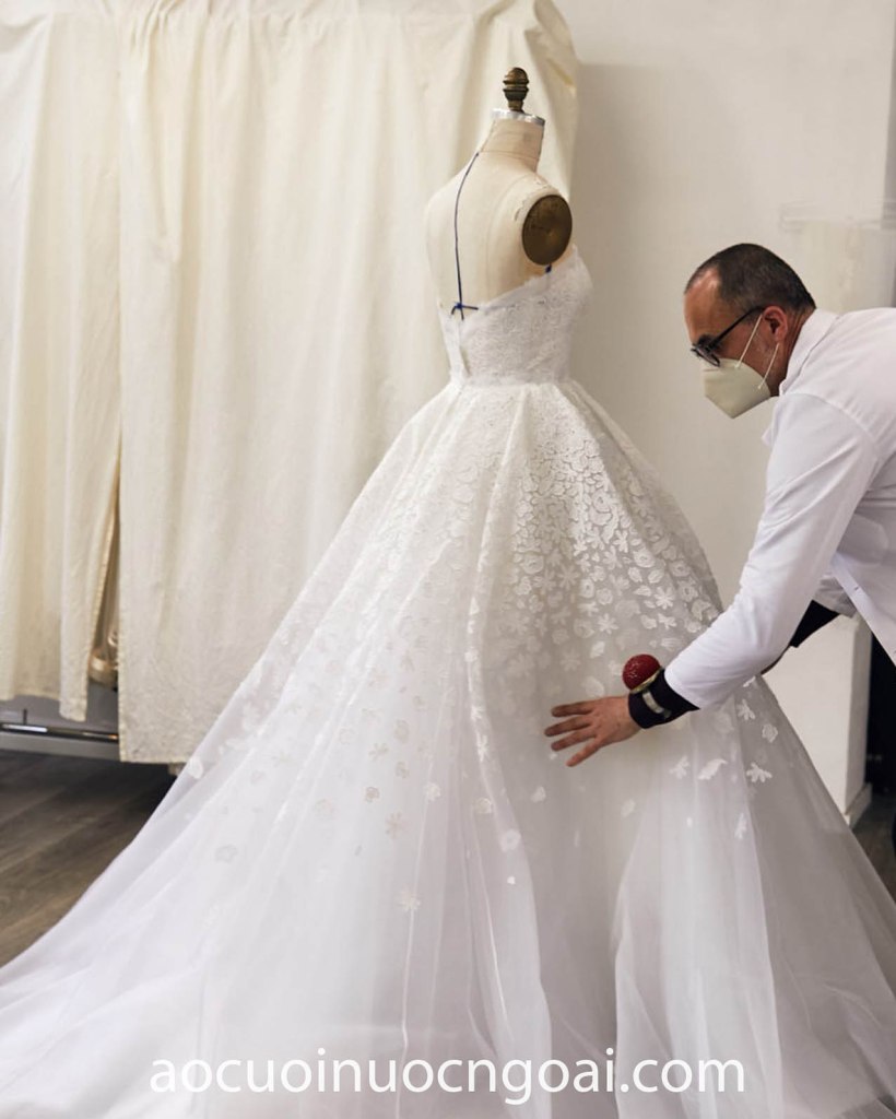 Tiếp đến, xưởng may áo cưới cao cấp sẽ tiến hành dựng phom dựa trên số đo chính xác của bạn. Và cuối cùng là công đoạn trang trí để tạo nên những điểm nhấn bắt mắt, đầy tinh tế.