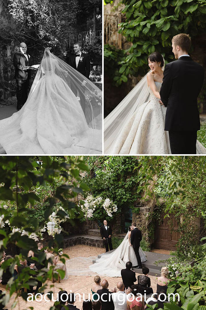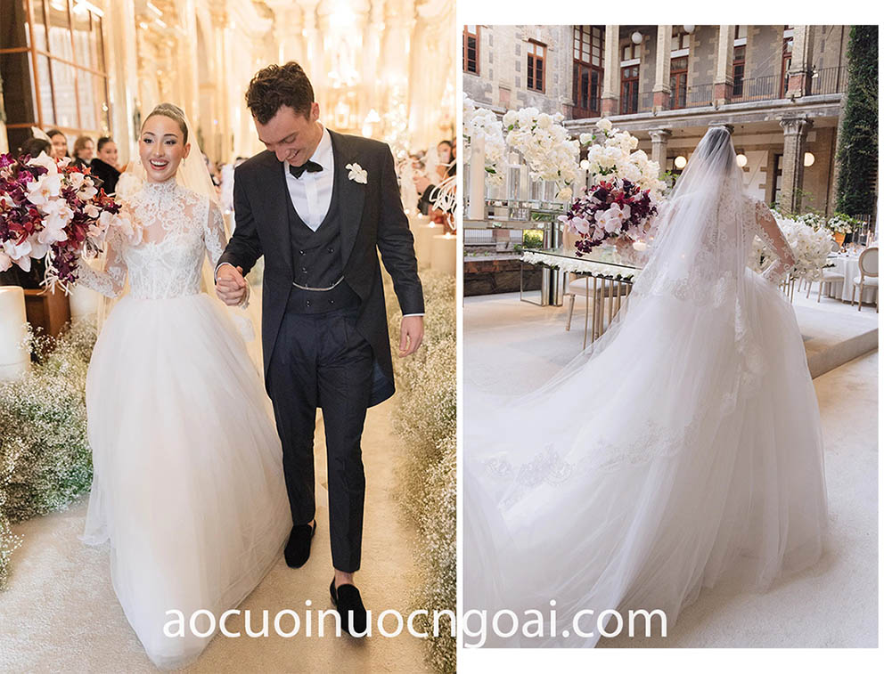 Nếu bạn dự định tổ chức lễ cưới trong Nhà thờ—áo cưới làm lễ cổ cao tay dài kín đáo luôn là gợi ý lý tưởng nhất, hình ảnh cô dâu truyền thống sẽ giúp bạn ghi điểm tuyệt đối trong mắt mọi quan khách.