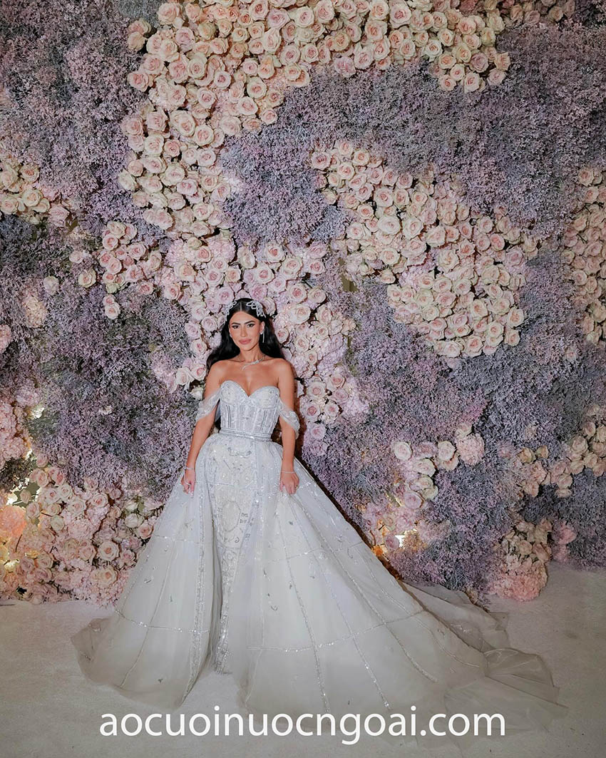 Ngoài ra, bạn cùng có thể kết hợp áo cưới đuôi cá với tùng rời để tạo thành kiểu váy cưới tùng rời làm lễ thông minh. Những thiết kế vô cùng bắt mắt với phom váy đuôi cá tôn dáng ngọc ngà, phối cùng tùng váy có thể tháo rời linh hoạt giúp bạn sở hữu hai ánh nhìn trong cùng một chiếc váy cưới.