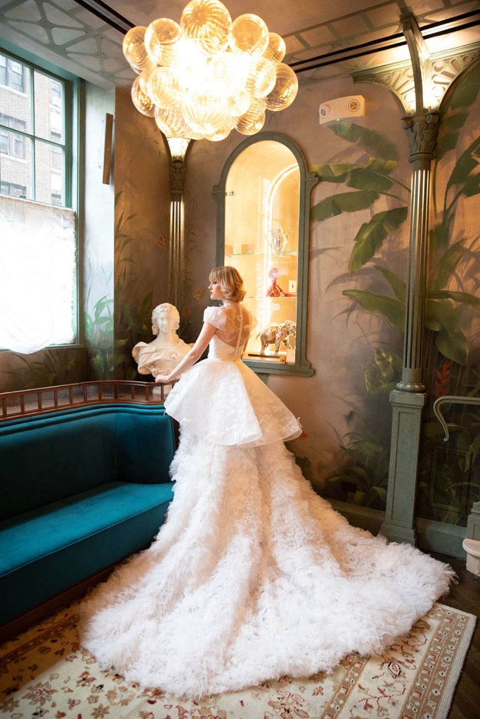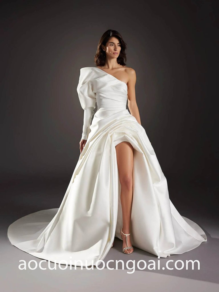 The return of the ’80s-favored bubble silhouette and bubble sleeves advances into the Spring 2025 wedding season through evolving shapes and textures of all lengths in designs, creating a chic and fun look perfect for dancing or a destination wedding. Silk mini dress with a cloud-like bubble hem skirt, empire-waist gown with billowing high-low tulle layers, maxi featured poufed hemlines of voluminous proportions,… are the best choice for modern brides who wants to make a sartorial statement.