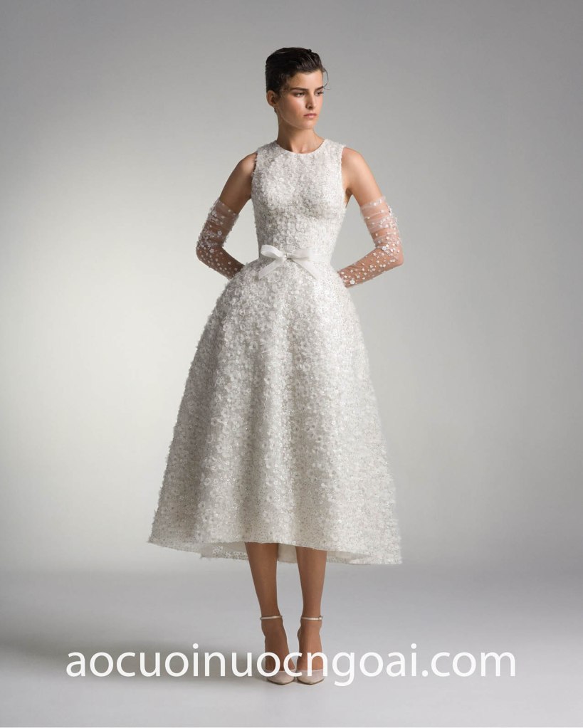 Another trend that has been growing over the past few years: tea length wedding dress conjures up images of Audrey Hepburn in Funny Face. The iterations of this demure and flattering length were endless and sophisticated bridal era is back. This’s an ideal middle ground if you’re not quite ready for a mini dress.