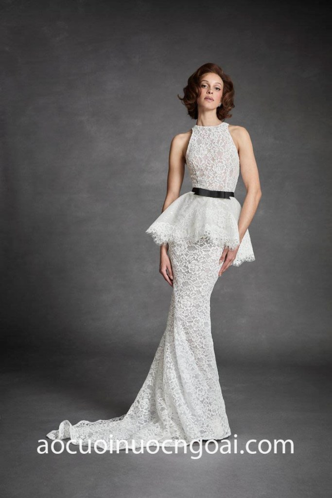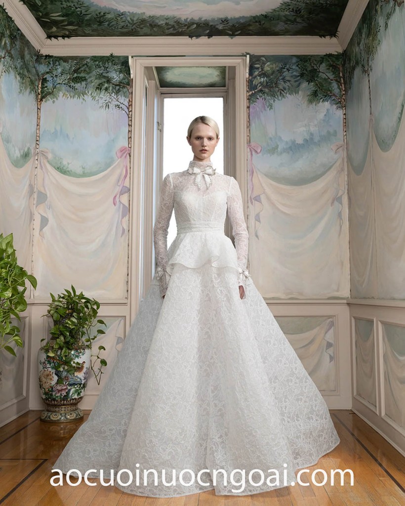 One of the buzziest trend of Bridal Spring 2025 collections is peplum wedding dress. With a return to old-world bridal glamour, striking classic peplum silhouettes are a great way to accentuate the waist and add flattering volume without the need for a full-skirted dress. Another amazing ’80s vintage influence adds a certain sweetness to a total look and can elevate a simple style to aisle-ready.