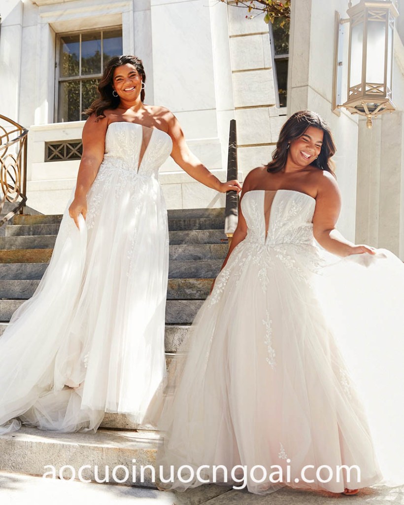 Ước mơ của mọi cô gái là được kết hôn trong bộ cánh cổ tích, tất nhiên sẽ có rất nhiều sự lựa chọn dành cho mọi cô dâu ngoại cỡ. Một chiếc váy cưới công chúa big size lý tưởng có đường cắt công chúa làm nổi bật những đường cong và mang đến vẻ ngoài vương giả. Thân áo corset siết eo vừa vặn và chân váy xoè lộng lẫy, đi cùng những chi tiết tinh xảo góp phần tôn vinh vẻ ngoài lãng mạn và xa hoa.