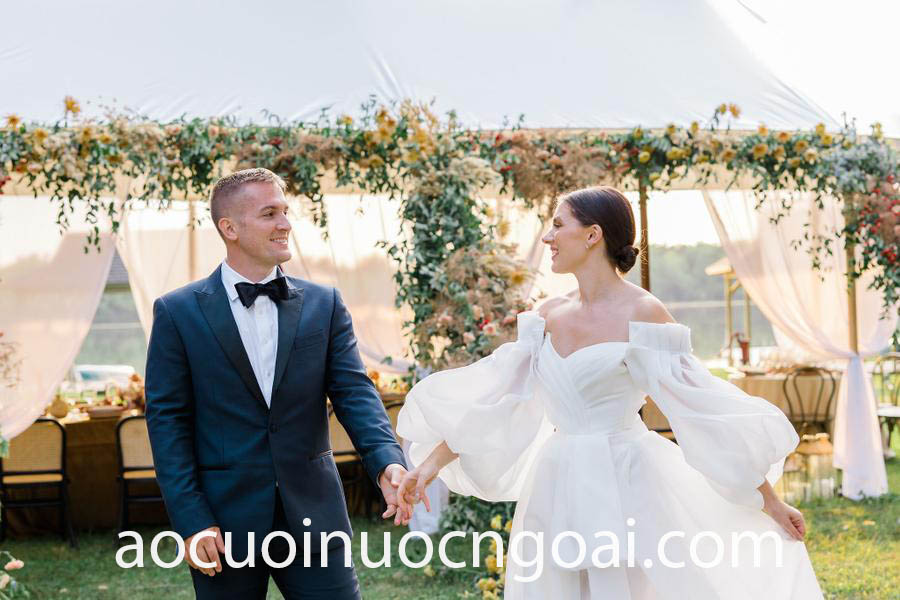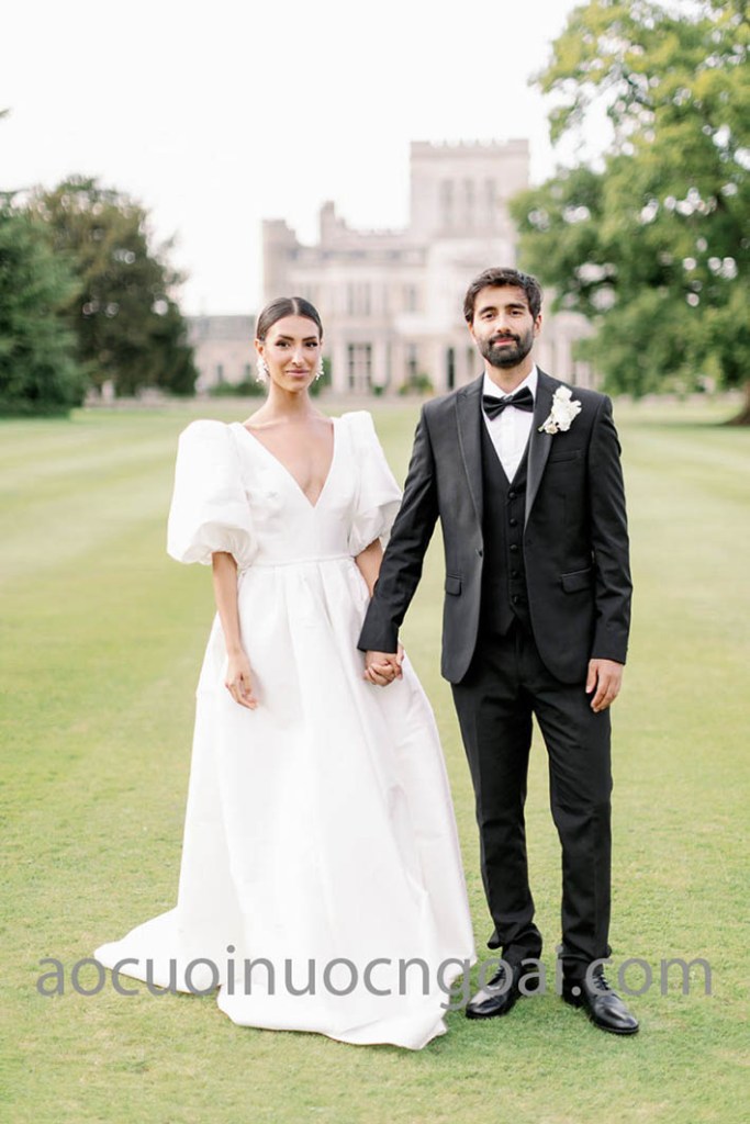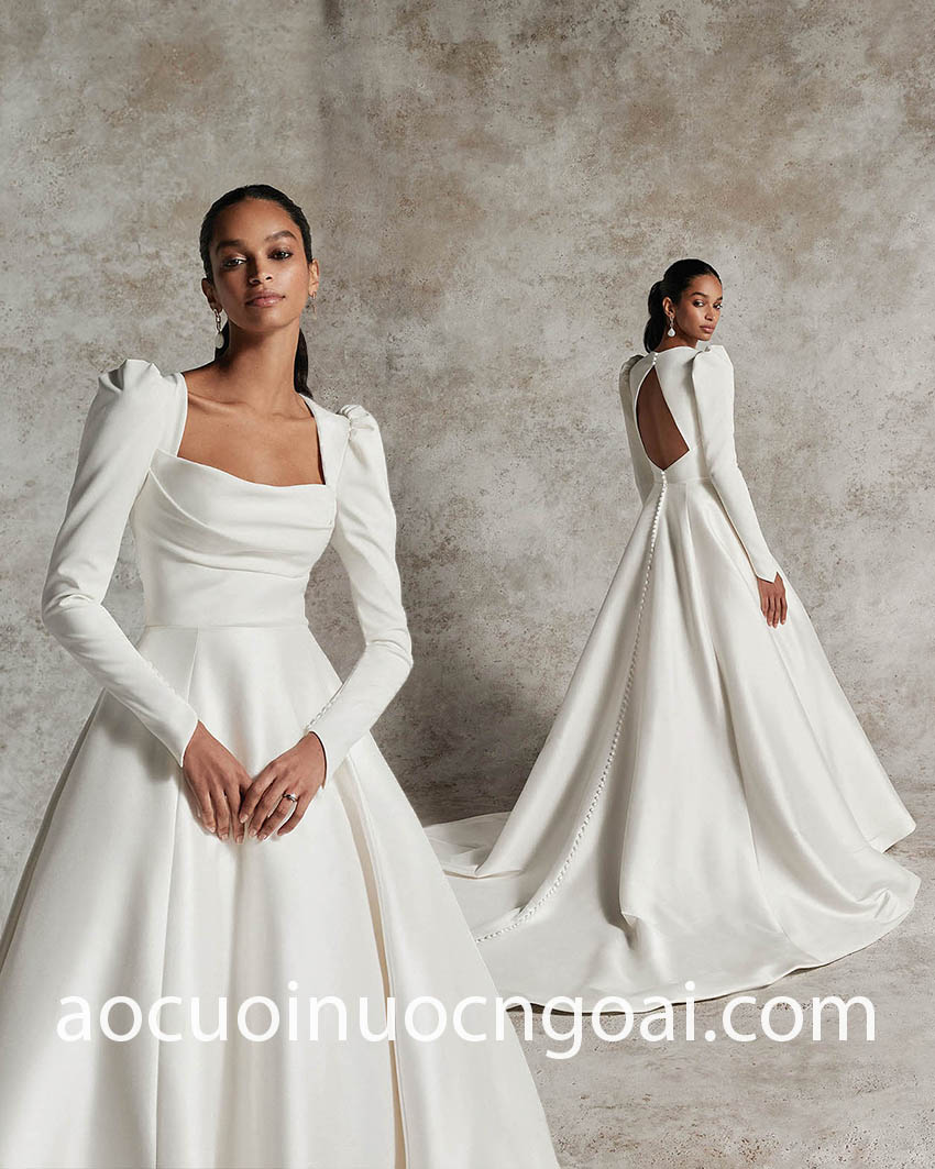 Distinct and never go out of style, a structured shoulder sleeve (slightly puff shoulder sleeve) creates a whimsical and feminine yet in style aesthetic. The perfect choice for fashion-forward bride who wants to get ahead of the curve.