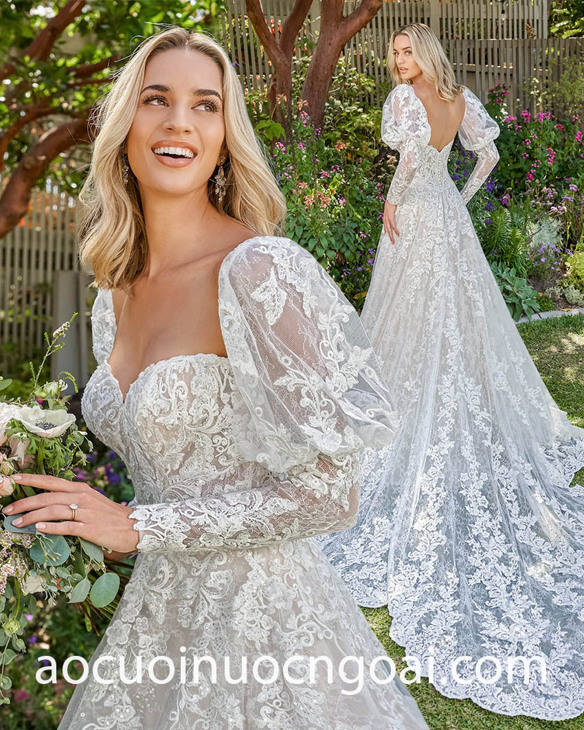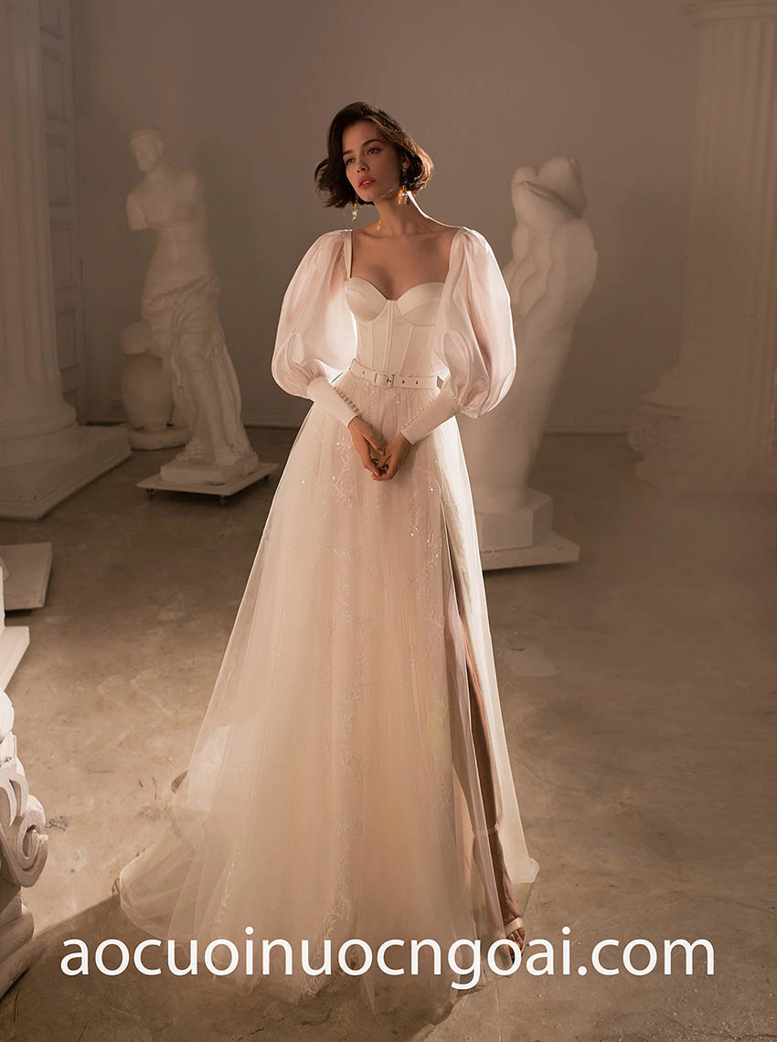 Juliet sleeve wedding dress exudes a dreamy, feminine, and luxurious vibe. This vintage inspiration designed to make you feel like a princess on your special day, and create an subtle romantic image of feminine grace.