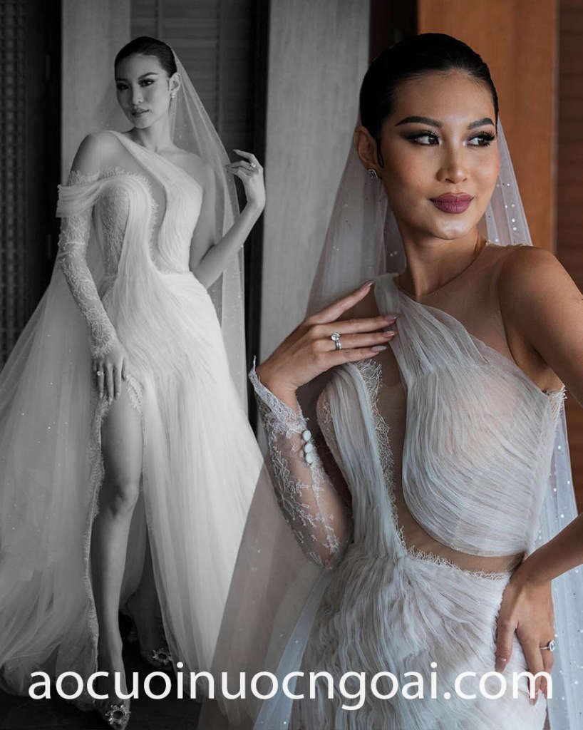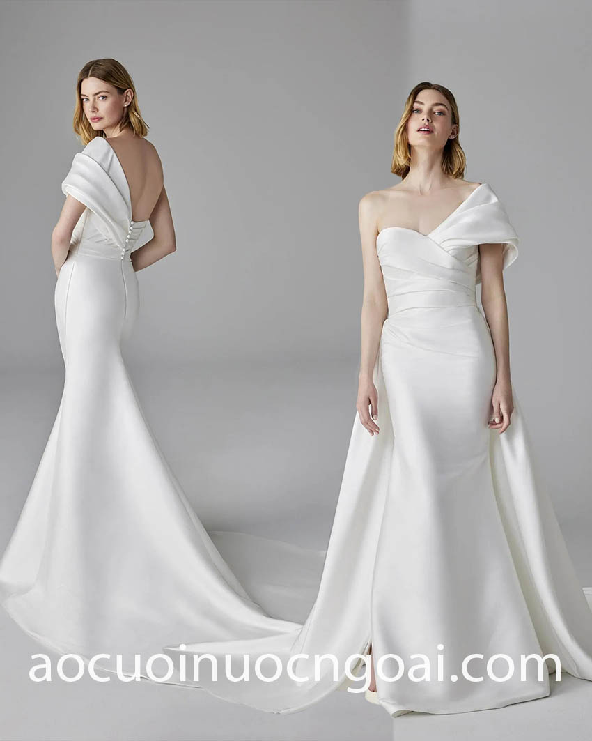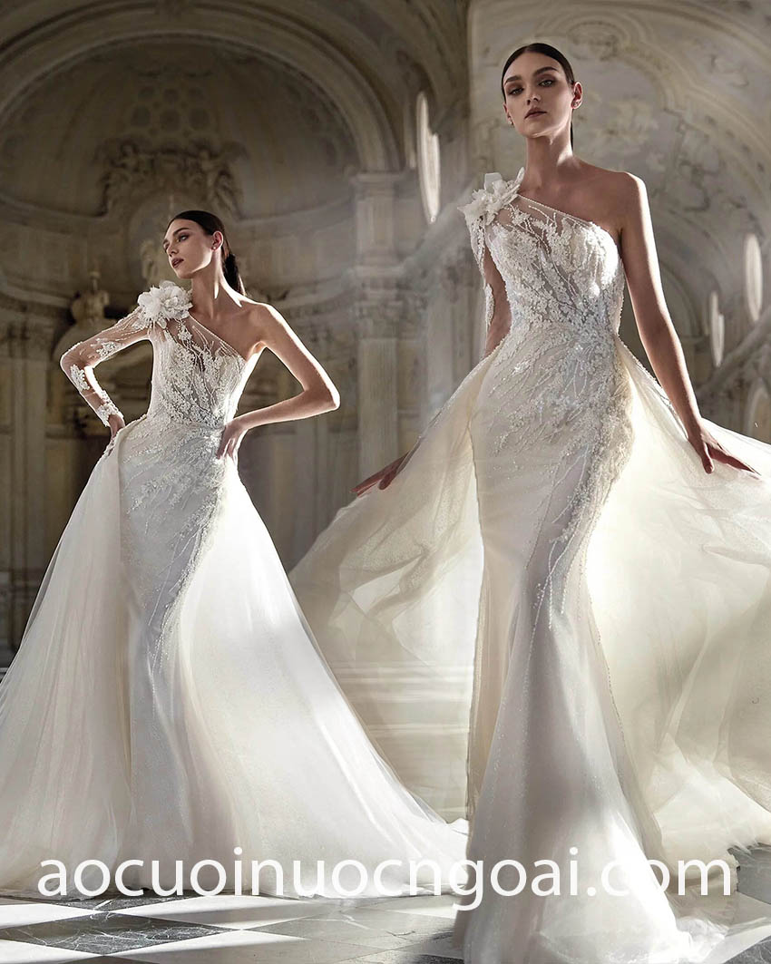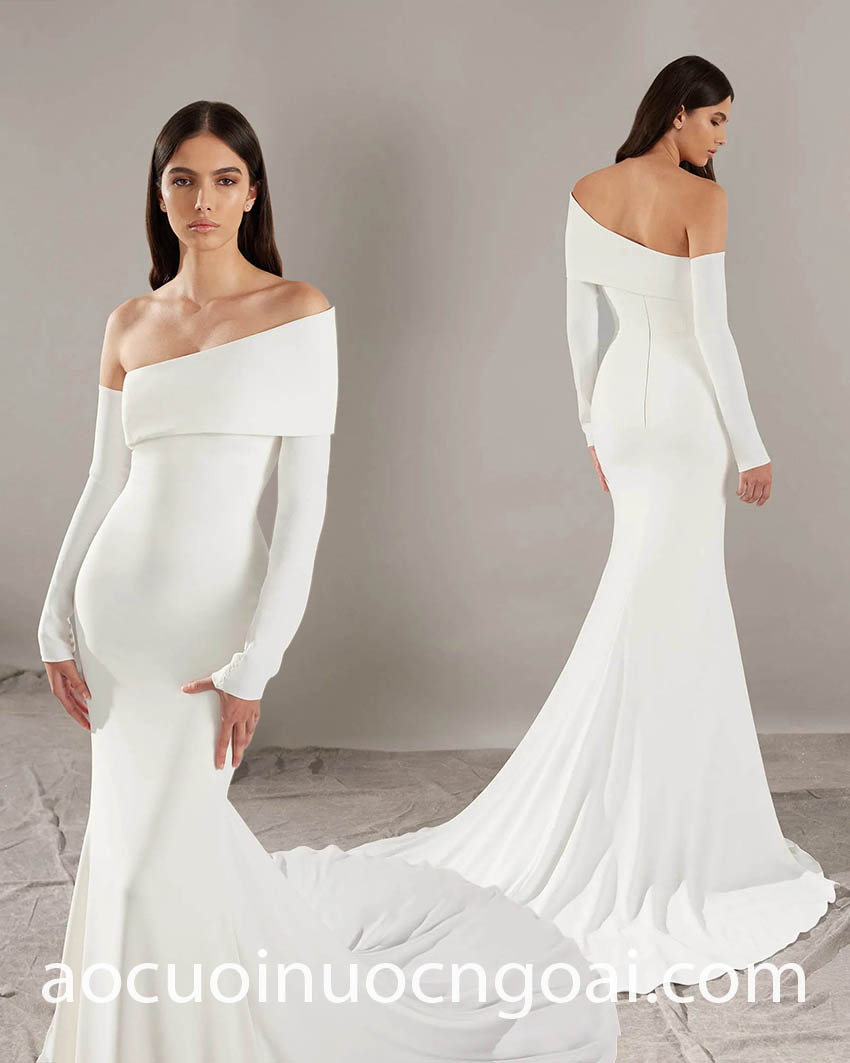 - Váy cưới tay áo lệch vai