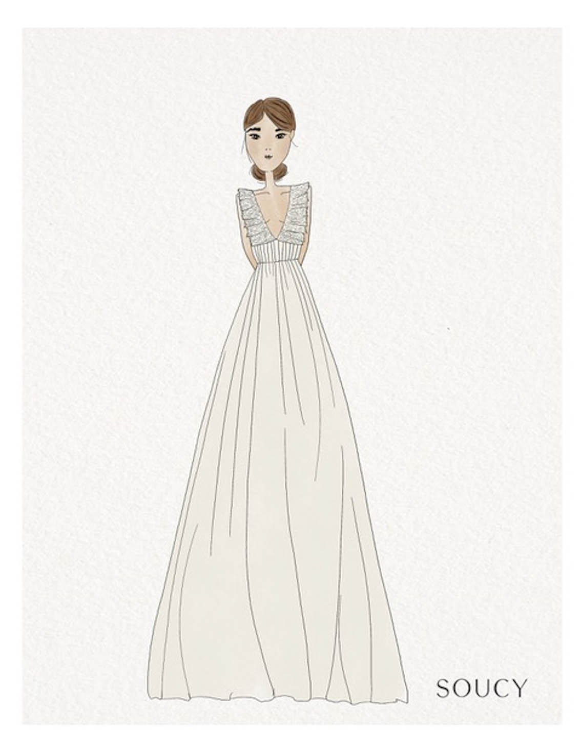 “Được tạo ra bằng loại vải truyền thống trang trọng như lụa duchesse satin với kiểu dáng giúp bạn cảm thấy hết sức nhẹ nhàng, nữ tính và lãng mạn mê ly.” – Đội ngũ SOUCY