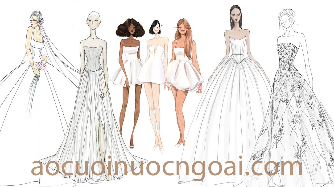 BẢN PHÁC THẢO SKETCH DỰ ĐOÁN XU HƯỚNG ÁO CƯỚI THU ĐÔNG 2025