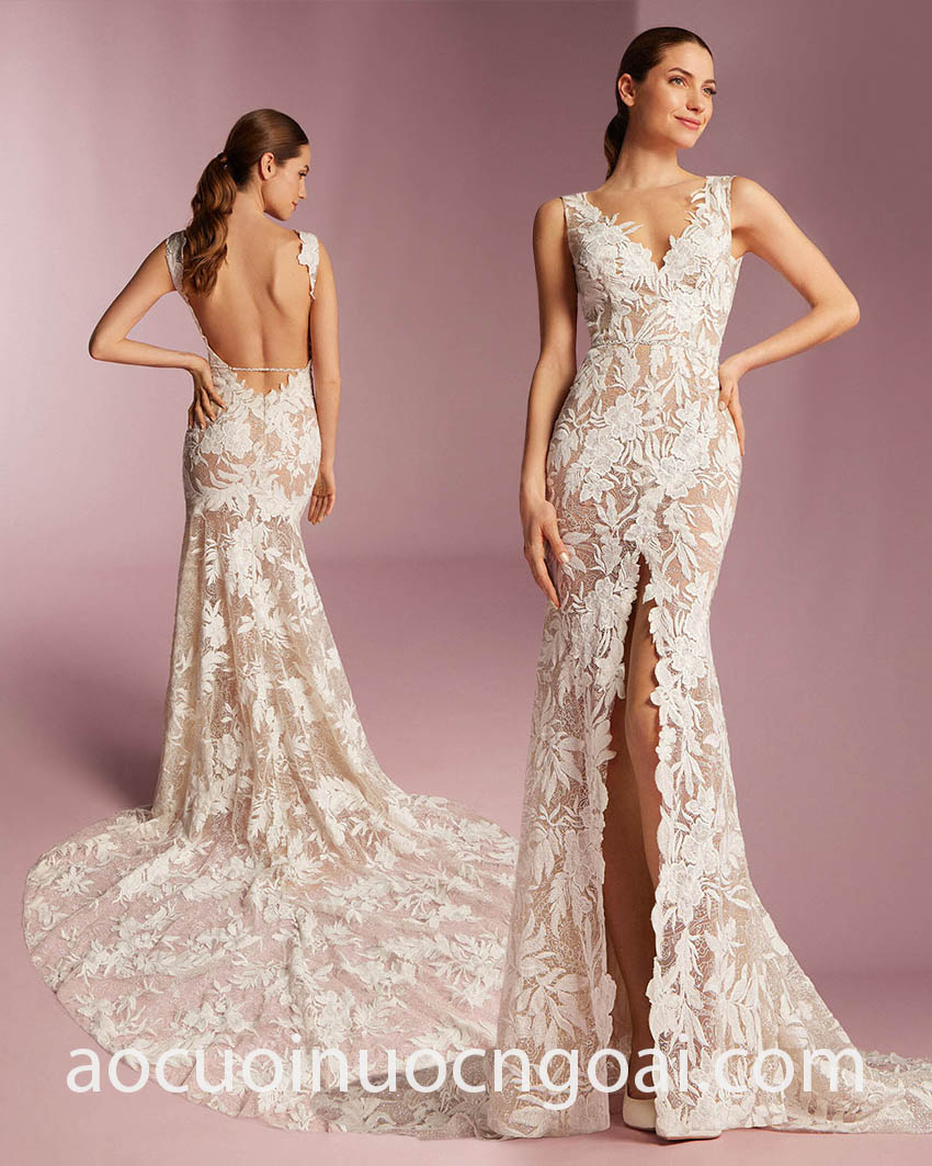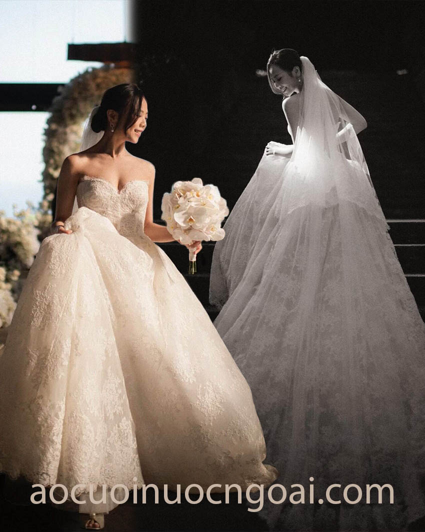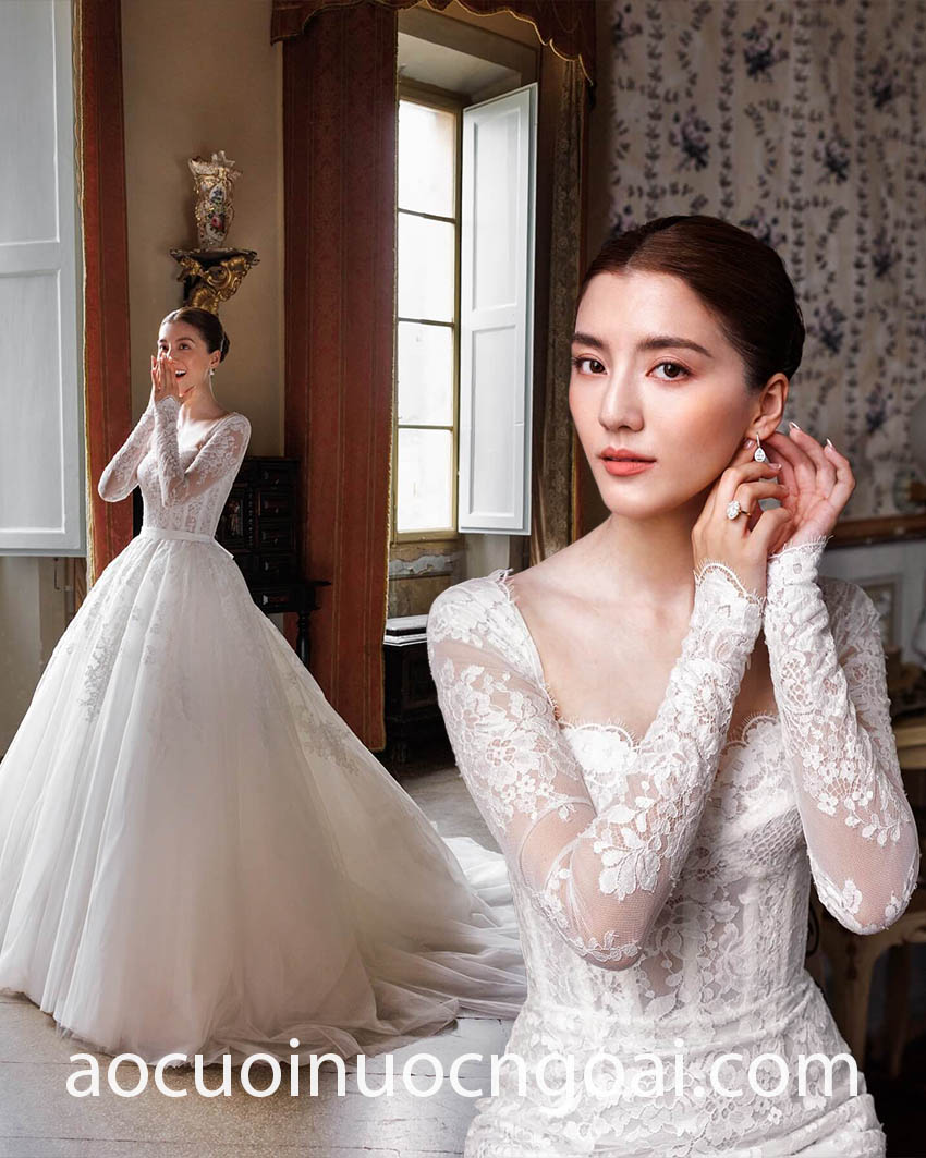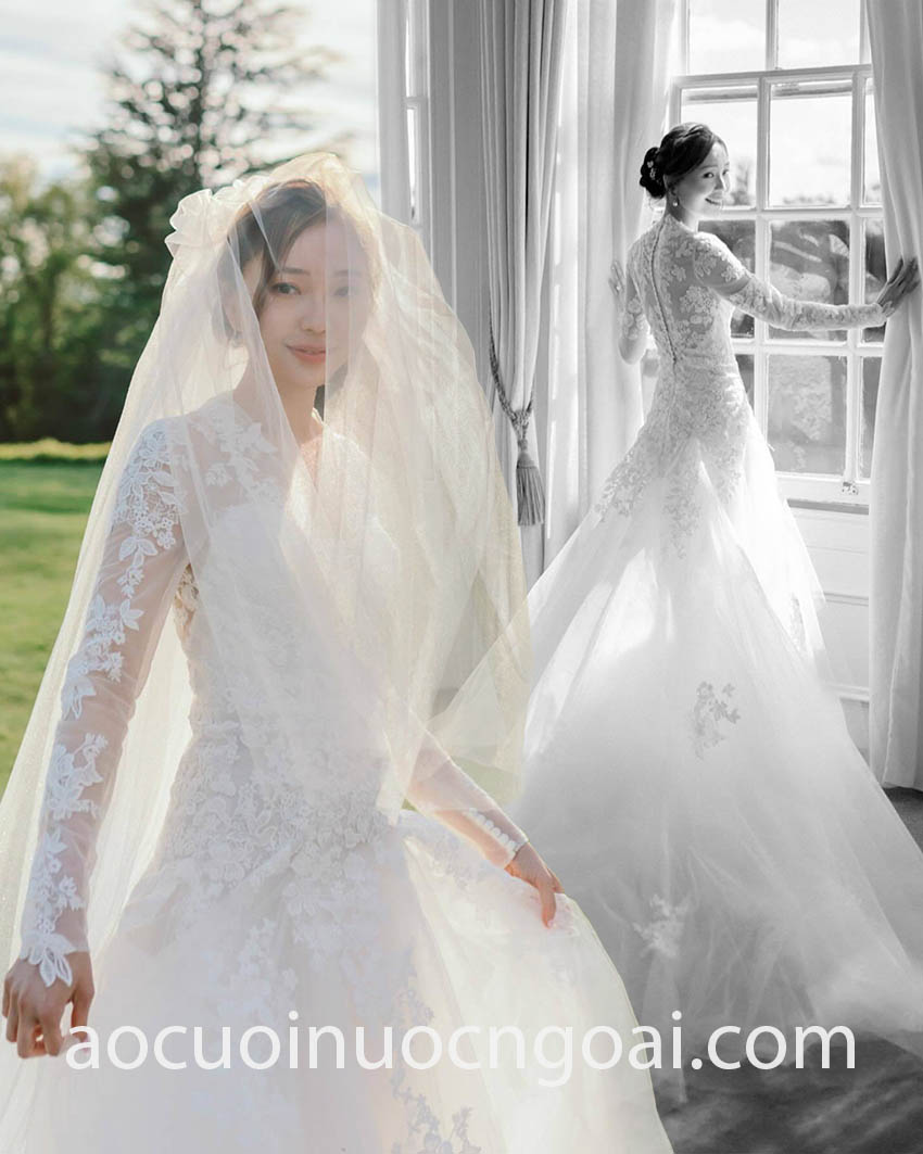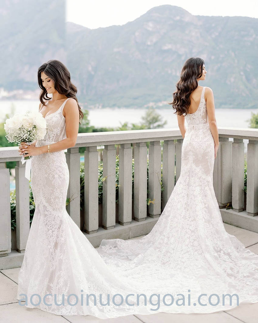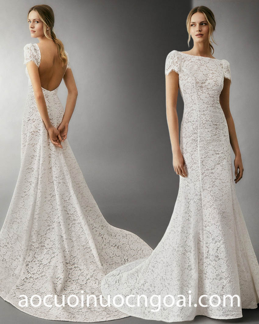 ÁO CƯỚI ĐUÔI DÀI REN NỮ TÍNH VÀ LÃNG MẠN