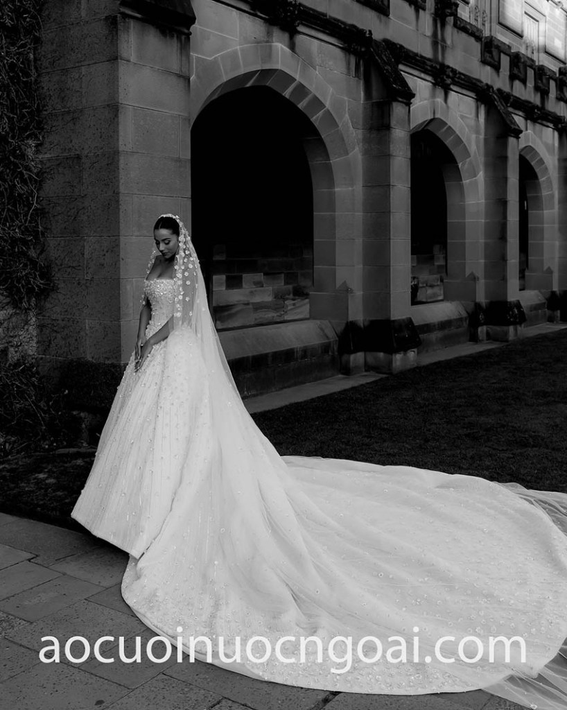 - Áo Cưới Đuôi Dài Lấp Lánh