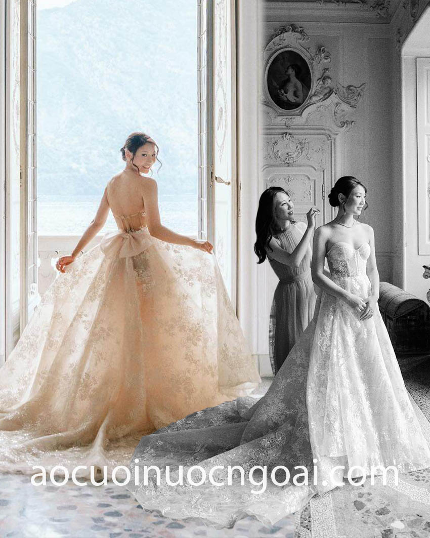 - Áo Cưới Đuôi Dài Hiện Đại Tối Giản