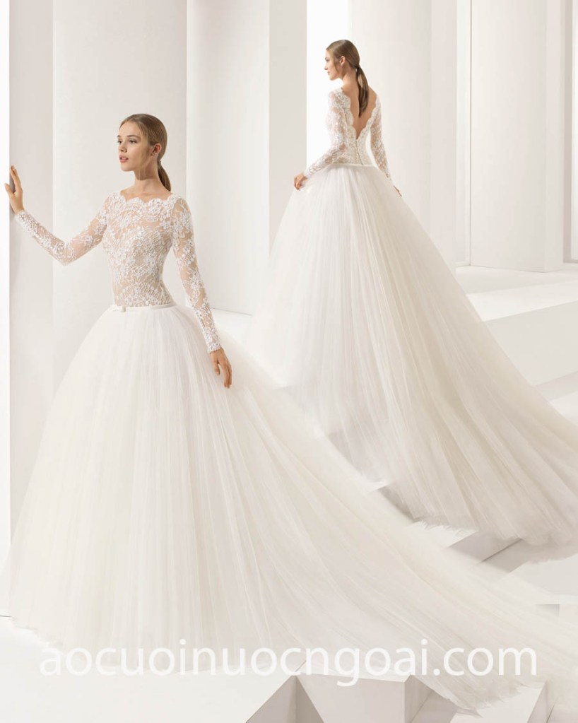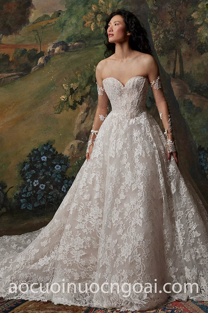 Váy Cưới Hạ Eo Phối Ren Lãng Mạn