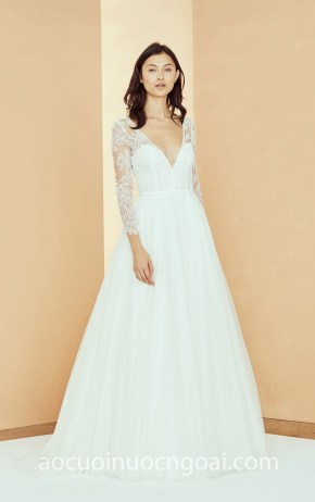 ÁO CƯỚI CHỮ A TAY DÀI REN NN7143