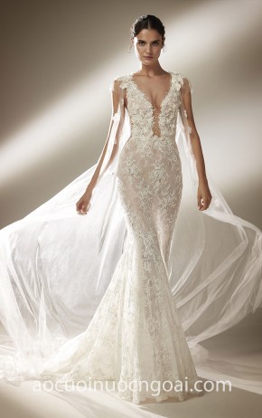 ÁO CƯỚI ĐUÔI CÁ CAPELET PHỐI REN GỢI CẢM NN7721