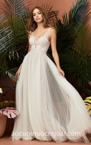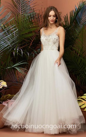 ÁO CƯỚI CHỮ A ĐÍNH ĐÁ TÙNG TULLE PHỒNG NN5805