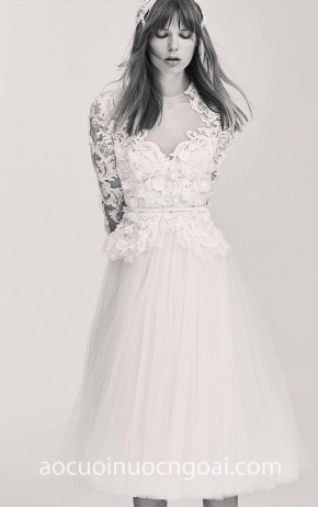 ÁO CƯỚI NGẮN PEPLUM TAY DÀI THÊU REN NN5693