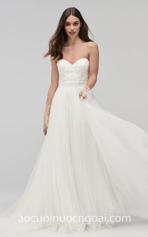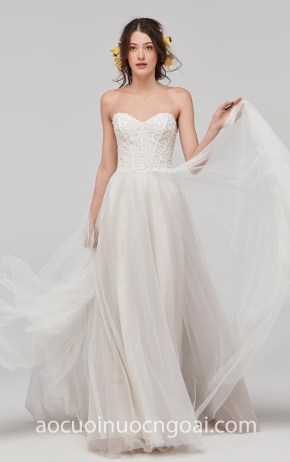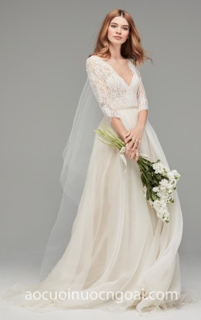 ÁO CƯỚI CHỮ A CỔ V XUYÊN THẤU ĐẮP HOA NN5626