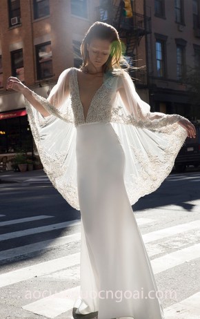 VÁY CƯỚI CÁNH TIÊN CỔ V SÂU ĐÍNH ĐÁ NN5460