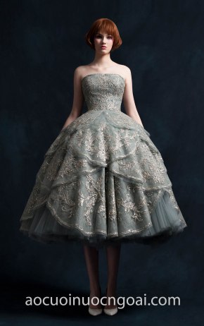 ÁO CƯỚI CÔNG CHÚA DẠ TIỆC NGẮN XẾP TẦNG LỘNG LẪY NN7608