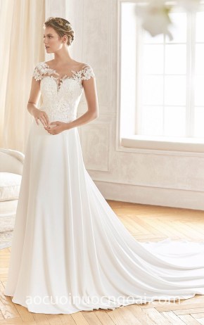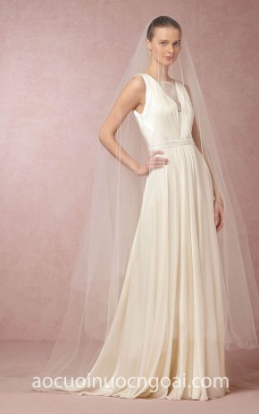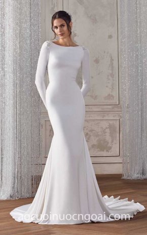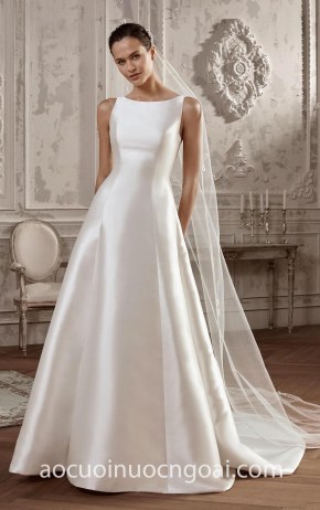 ÁO CƯỚI CHỮ A SATIN CỔ THUYỀN TỐI GIẢN MINIMALIST NN7568