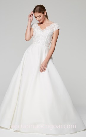 ÁO CƯỚI CÔNG CHÚA TAY NGẮN ĐÍNH ĐÁ TÙNG XOÈ TRƠN NN4575