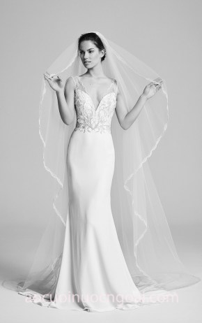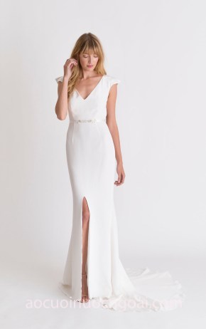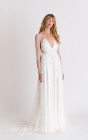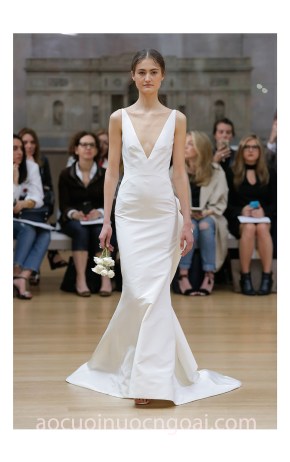 ÁO CƯỚI ĐUÔI CÁ CỔ V SÂU THÊU REN NN4154
