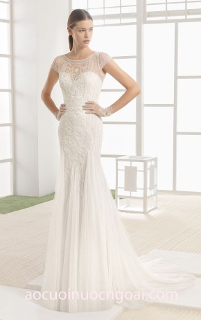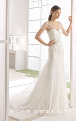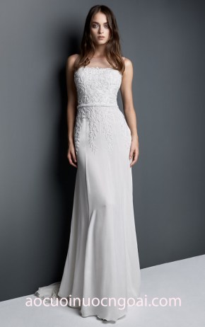 ÁO CƯỚI SUÔN THÊU REN ĐÍNH ĐÁ NN4064