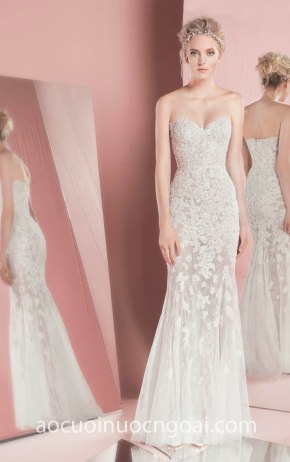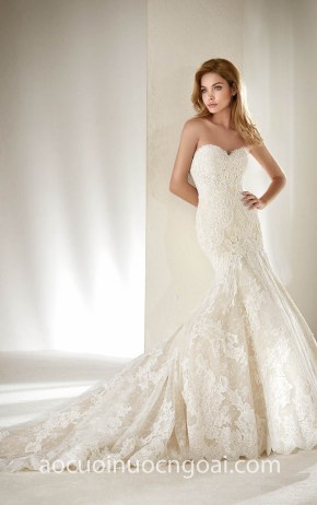 ÁO CƯỚI ĐUÔI CÁ PHỐI REN CHO CÔ DÂU NHỎ CON NN7476
