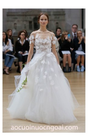 ÁO CƯỚI CÔNG CHÚA CÚP NGỰC TÙNG XOÈ ĐÍNH REN HOA NN2707