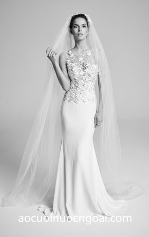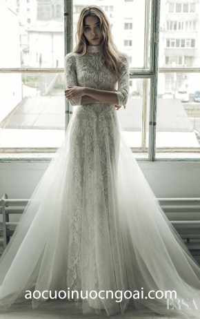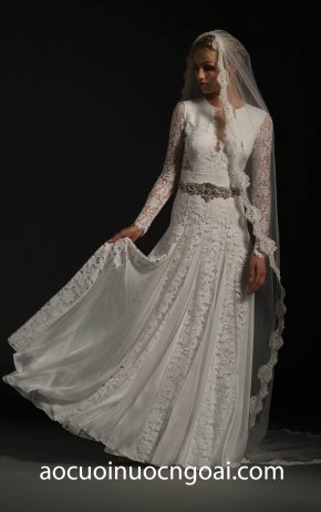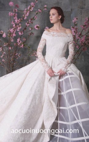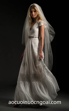 ÁO CƯỚI CHỮ A THÊU REN CHÂN VÁY XẾP LI NN2613