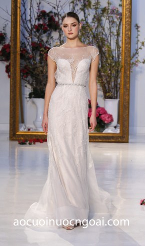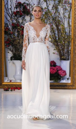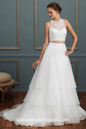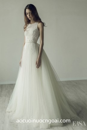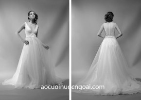 ÁO CƯỚI CHỮ A ĐÍNH HOA NỔI 3D LÔNG VŨ NN2508