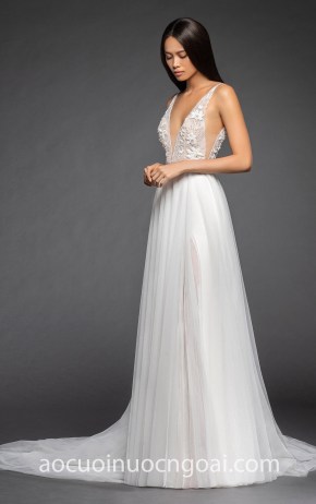 ÁO CƯỚI CHỮ A TAY DÀI PHỐI REN THÊU THANH LỊCH NN7329